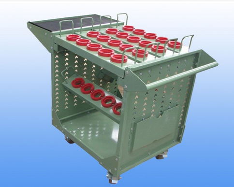 刀具架 適用於加工車間、維(wéi)修車間等場合,可分類(lèi)放置刀具,並(bìng)可靈活移動方便(biàn)取用。 現代貨架廠生產的HY-HSK係列刀具車成多邊成型(xíng)的前後側板上有模數化的人字孔,可將(jiāng)刀具座掛板按水平或15、30傾斜(xié)放置,方便多種刀(dāo)具的存放。 高強度腳輪,車前(qián)為兩個定向輪,車後為兩個萬向帶(dài) 刹車輪,推行平穩(wěn),方向性好,刹車(chē)固定後不會滑動。 結構特點(diǎn) 1.配有標簽,明確分類. 2.快速拿出(chū)工具,節約查找時間. 3. 配有輪子,便於移(yí)動. 4.抽屜可拉出100%