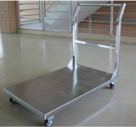 不同(tóng)用途的手推(tuī)車都有著不同的車體結構。通用四輪(lún)手推車(chē)多(duō)半有一個載貨平台。專用手推車則結構繁多(duō),有的車體製成箱形,適於搬運重量輕而(ér)便於裝卸的物品;有的車體伸出托架,便(biàn)於(yú)安放杆(gǎn)、軸和管子等零件;有(yǒu)的車體形狀完全與貨物(wù)吻合,如氣瓶車;有的十分小巧,可以(yǐ)折疊,便(biàn)於攜帶;有的為便於裝卸桶(tǒng)裝液體、紙卷等(děng)筒狀貨物,車(chē)體上有兩條扁鋼形成低矮斜麵,以利於筒(tǒng)狀物滾上滾下,如筒狀貨物裝卸車。現代手推車都(dōu)裝有滾動軸(zhóu)承(chéng),車輪用(yòng)實心(xīn)輪(lún)胎或充氣輪胎。