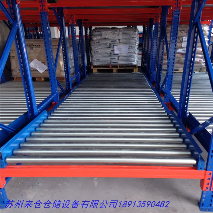 工作(zuò)原理 重力式貨架又叫輥道式貨架,屬於倉儲貨架(jià)中的托盤類存儲貨架。重(chóng)力式貨架是橫梁式貨(huò)架衍生品之一,貨架結構與橫梁式貨架相似,隻是在橫(héng)梁上安上滾筒式軌道,軌道呈3-5°傾斜。托盤貨(huò)物用叉車搬運至貨架進貨口,利用自重,托盤從進口(kǒu)自動滑行(háng)至另(lìng)一端的取貨口。重力式貨架屬於先進先出的存儲方式。 貨架特點 1、貨物由高的一端存入,滑至低端,從低端取出。貨物(wù)滑動過程中,滑道(dào)上設置有阻尼器,控(kòng)製貨物滑行速度保(bǎo)持(chí)在(zài)安(ān)全範圍內。滑道(dào)出貨一端設置有分離器,搬運機械可順利取出第一(yī)板位(wèi)置(zhì)的貨物。 2、貨物遵循先進先出順序。貨架具有存儲密度(dù)高,且具有(yǒu)柔性配合功能。 3、適用於以托盤為載體的存儲作業,貨物堆棧(zhàn)整齊,為大件重物(wù)的存儲提供了較好的解決方案(àn),倉儲空間利用率在75%以上,而且隻需要一個進出貨通道(dào); 4、重力式貨架(jià)非常環保,全部采用無動力形式,無能耗,噪音低,安全(quán)可(kě)靠,可滿負荷(hé)運作。 |